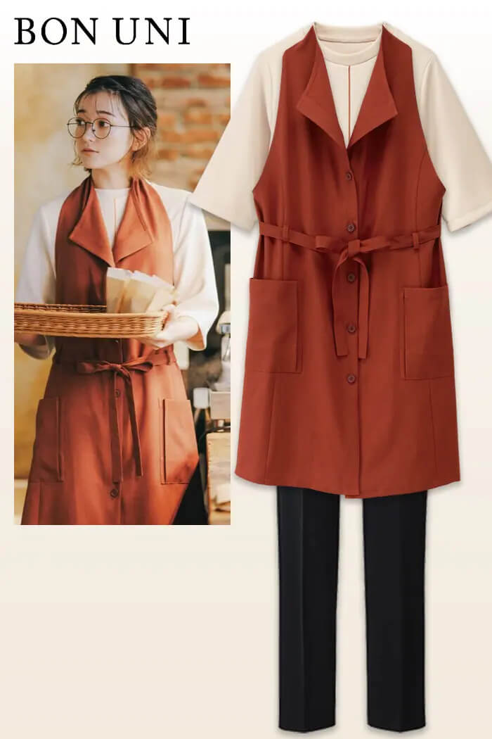 飲食店・サービス制服ユニフォームはコーディネートから選ぶ – 暖色系のほんわり優しさを感じるコーディネート★