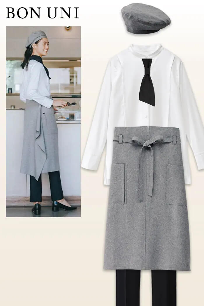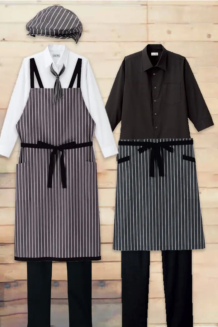 飲食店・サービス制服ユニフォームはコーディネートから選ぶ – ひらりと揺れるエプロンで後ろ姿もかわいいコーディネート★