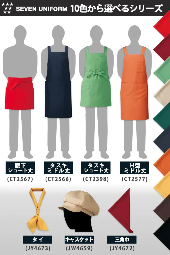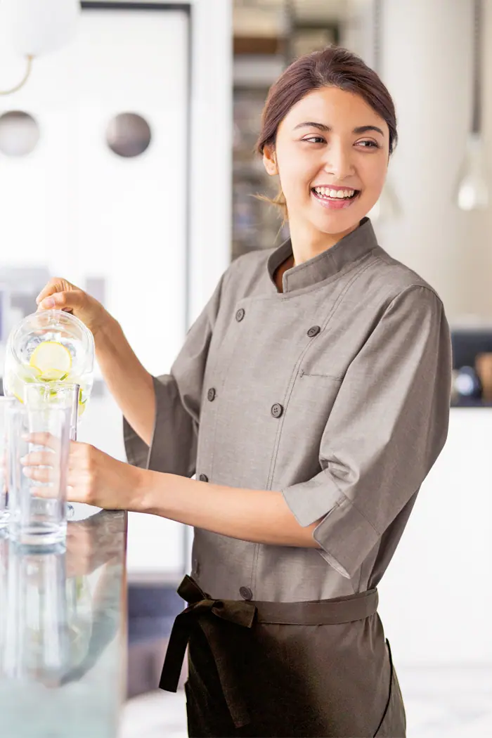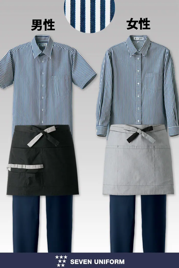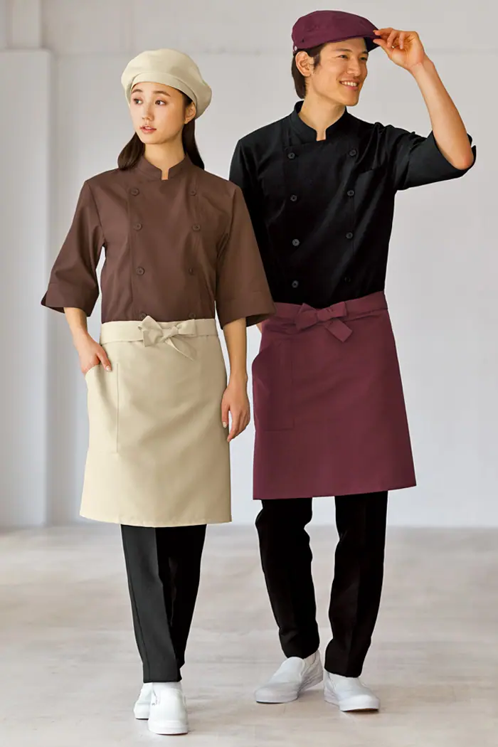 ナチュラル系厨房、ホールスタッフに。カフェ、イタリアン、フレンチなどの飲食店で男女兼用でそろえられます。