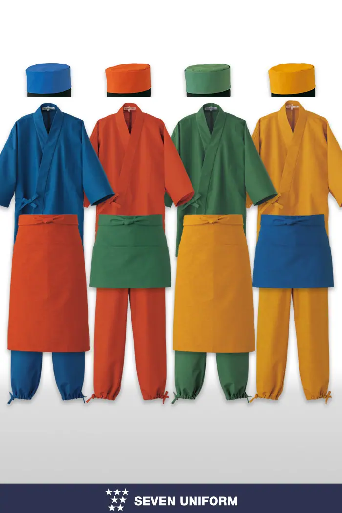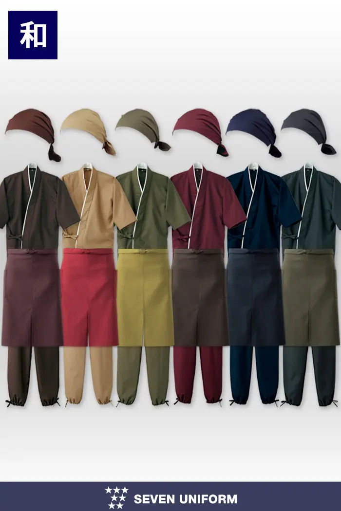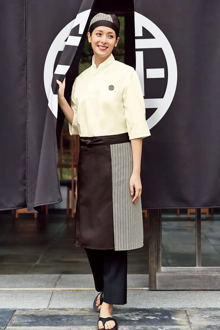 家庭でも洗濯ができる茶衣着ユニフォームは、料亭、旅館、和風飲食店、そして海外の和の飲食店にピッタリのアイテムです。