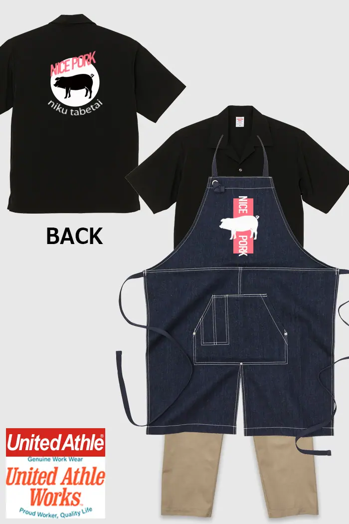 右ポケットの2本ラインがポイント、ハリのあるツイル素材のエプロン。