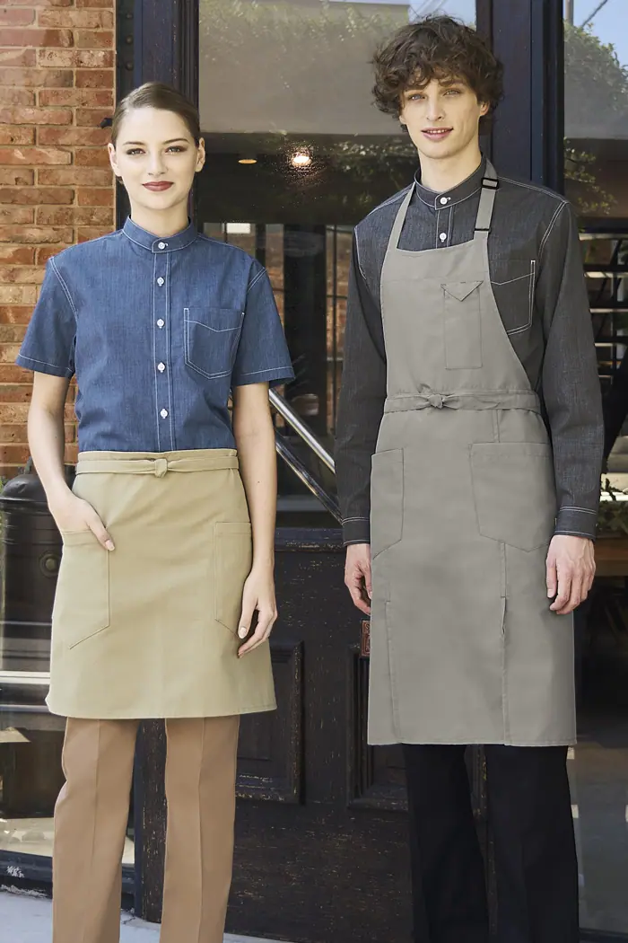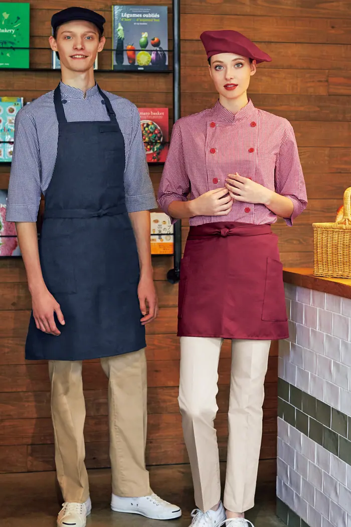 帽子とエプロンのコーディネートも可能で、お店が元気で明るい雰囲気になります。