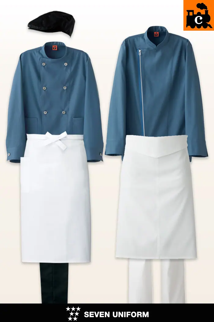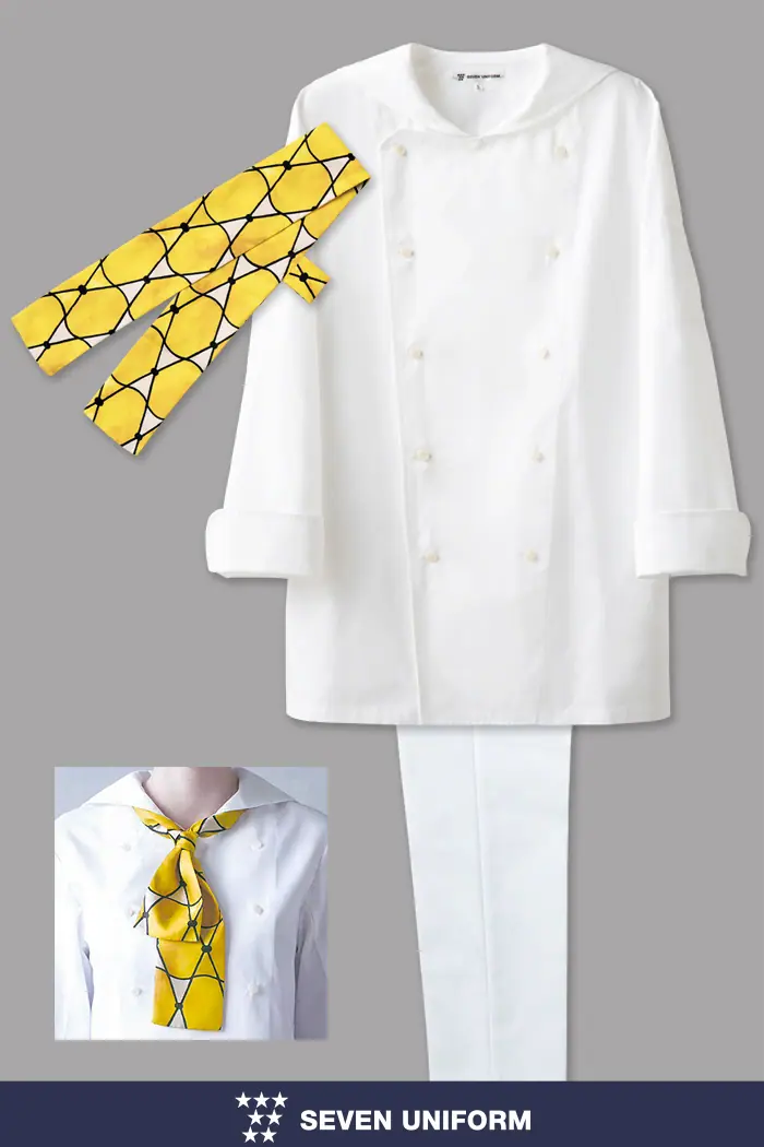 飲食店・サービス制服ユニフォームはコーディネートから選ぶ – セーラー襟コックコート&タイで爽やかおしゃれスタイル