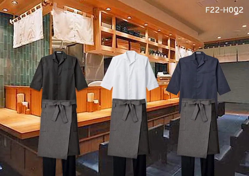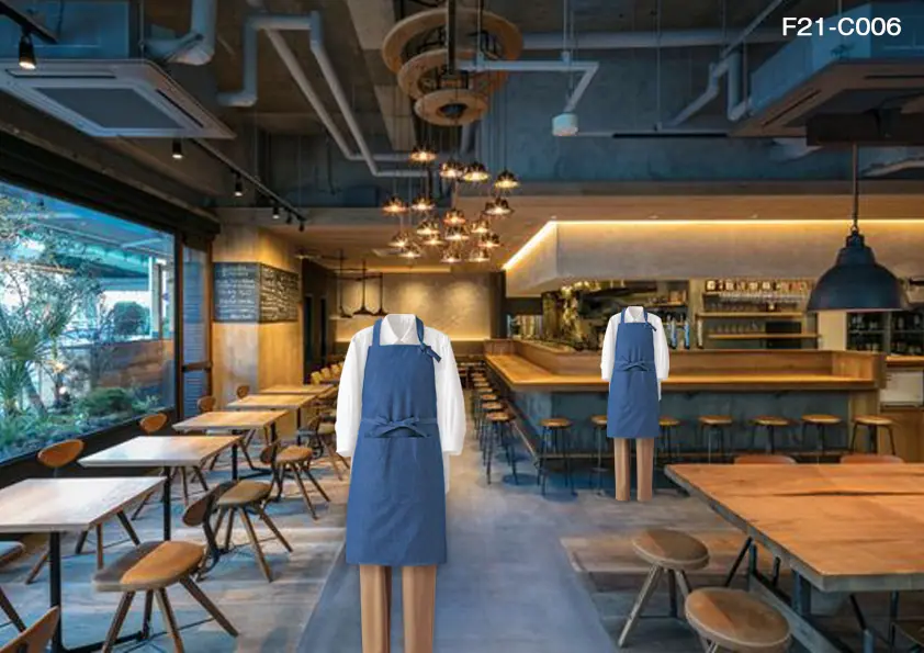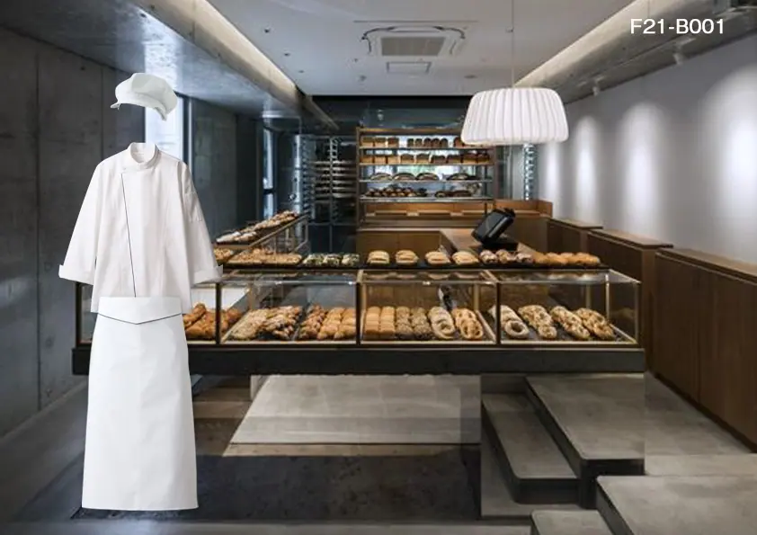 F21-A001 飲食店制服コーディネート 飲食店洋風レストラン コーディネート 北欧、洋風店舗にあう新作コックコートの組み合わせスタイル