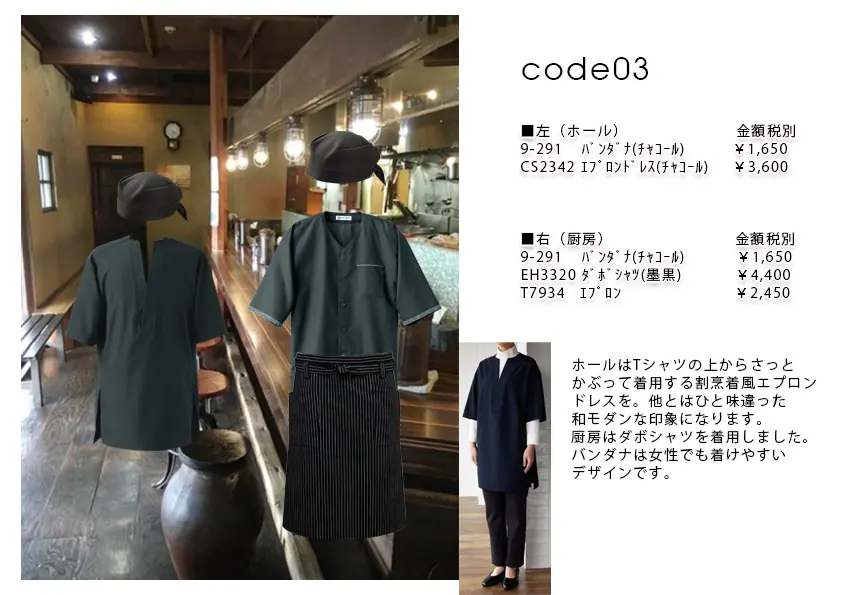 飲食店・サービス制服コーデ提案実績 20220208 蕎麦 制服
