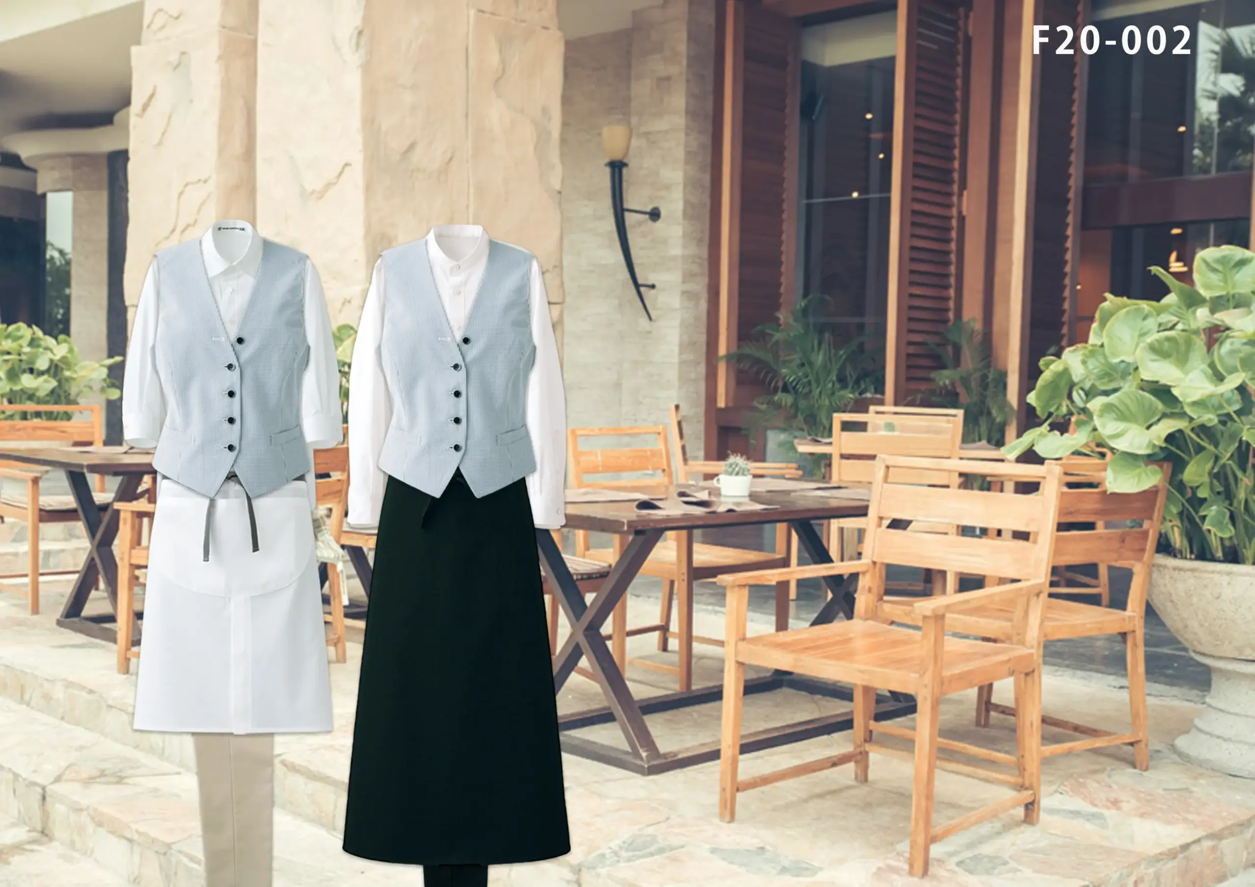 F20-031 飲食店制服コーディネート ブラックを基調としたシックな店内に映える、上品なモノトーン配色のコーディネート