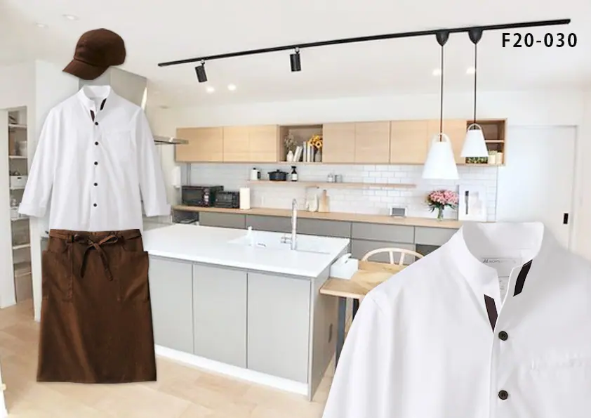 F20-030 飲食店制服コーディネート ドラマ「この恋あたためますか」のスイーツ制作現場で実際に森 七菜さん、仲野太賀さんが着用しているものと全く同じキャップ、コックコート、エプロン