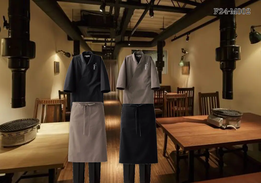F24-M002 【飲食店ユニフォームはコーデから選ぶ】高級感のある落ち着いたモノトーンコーデ。高級感のある炭火焼、居酒屋や 焼肉、鉄板焼き店の厨房、ホールスタッフの制服に
