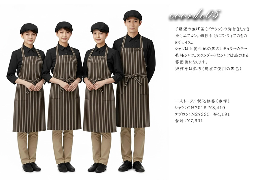 飲食店・サービス制服コーデ提案実績 20220929 飲食店cafe制服コーデ提案 エスペリアホテル長崎様