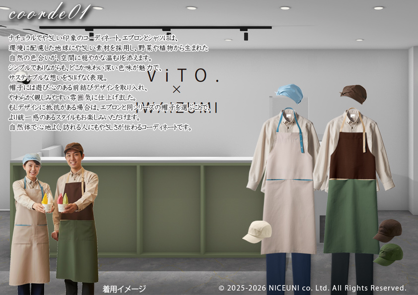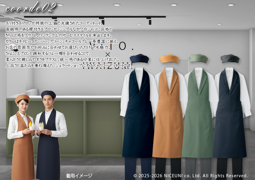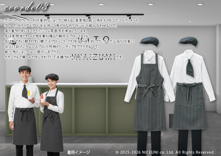 飲食・サービス制服コーデ提案 2026/3/23ジェラート映え爽やかカフェ制服コーデ【ユニフォーム、制服専門店ナイスユニ】