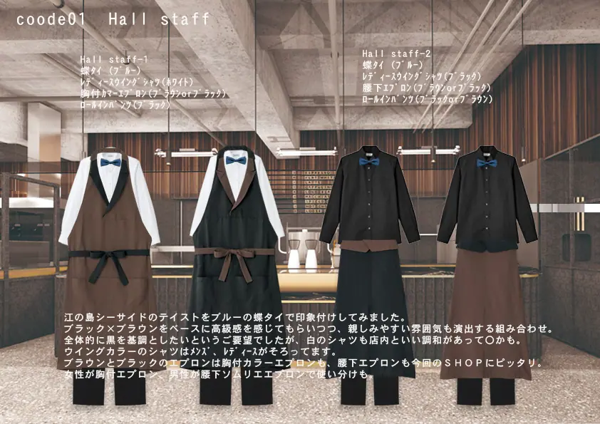 TOP コーデ提案実績一覧 カフェ制服ユニフォーム コーデ提案実績 カフェ制服ユニフォーム 実際に店舗よりご依頼いただいたコーディネート提案の実績をご紹介します。店舗の写真やイメージ図を基に、ご予算や希望の雰囲気・カラーに合った在庫アイテムを選定しております。 お客様の業種が見当たらない場合は、店舗種類(例えばラーメン、焼肉 中華 など)をキーワード入力して検索することもできます。 カフェ制服ユニフォーム 洋風レストラン制服ユニフォーム 和食店・居酒屋制服ユニフォーム 寿司・高級店制服ユニフォーム ホテル・観光制服ユニフォーム パン・ベーカリー制服ユニフォーム スイーツ販売制服ユニフォーム スーパー食品販売制服ユニフォーム 多国籍料理制服ユニフォーム その他制服ユニフォーム 8件の商品が見つかりました code_20250408 カフェ制服ユニフォーム和食店・居酒屋制服ユニフォーム code_20231127 カフェ制服ユニフォームその他制服ユニフォーム code_20230925 カフェ制服ユニフォーム code_20240410 カフェ制服ユニフォーム code_20220430 カフェ制服ユニフォームスイーツ販売制服ユニフォーム co002 カフェ制服ユニフォーム code_20200319 カフェ制服ユニフォーム code_20201201 カフェ制服ユニフォーム 業種別コーデ一覧 店舗コーデ一覧 コーデ提案実績一覧