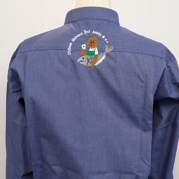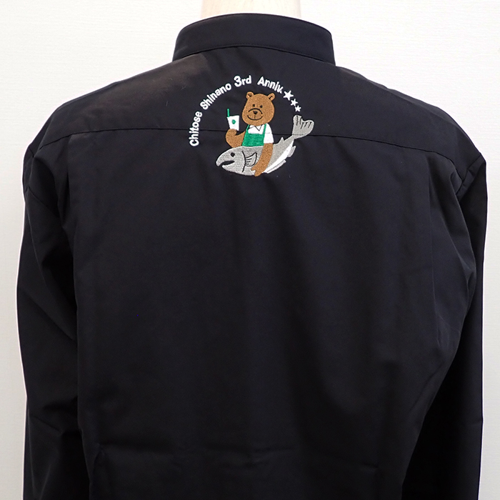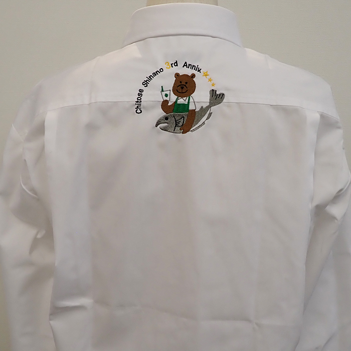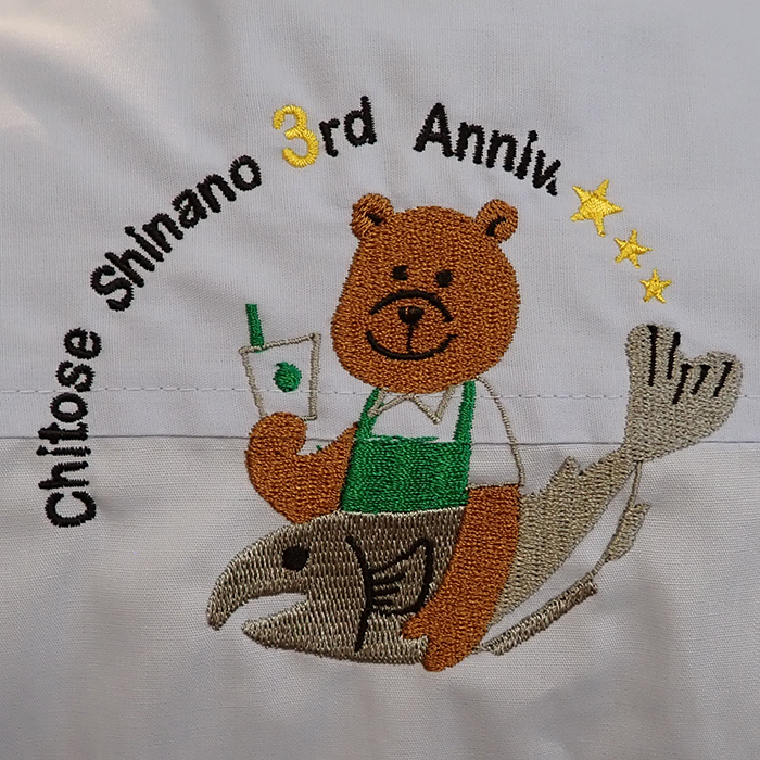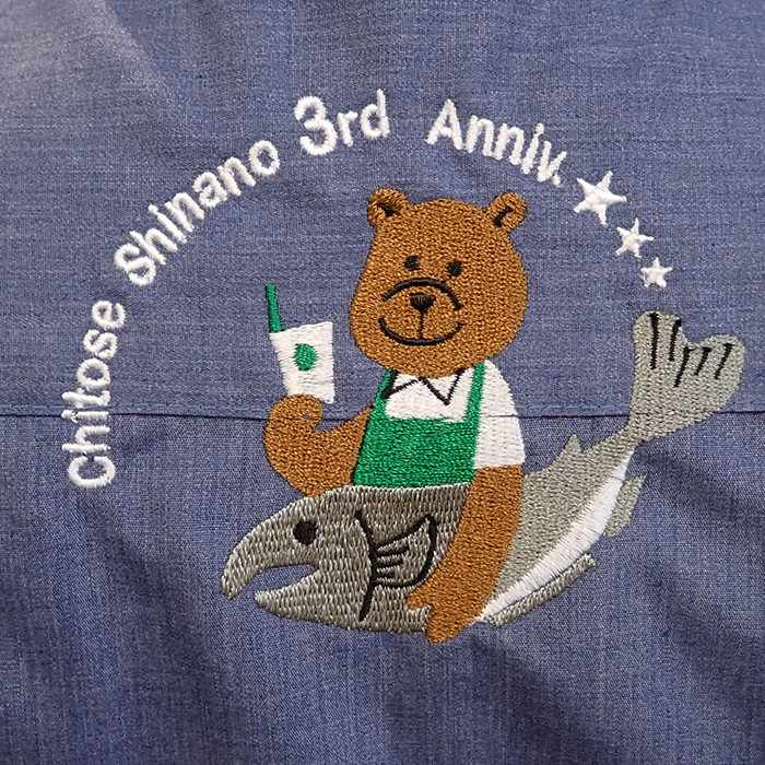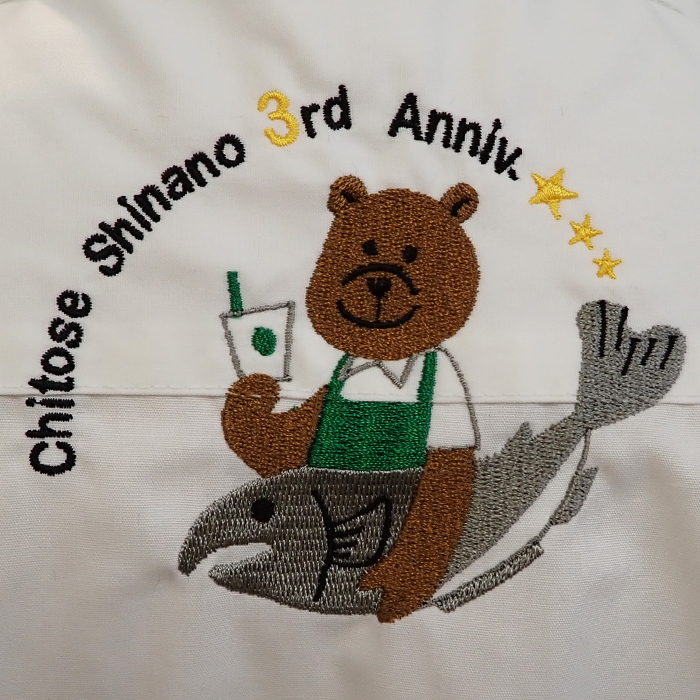 記念すべき3周年のかわいいオリジナルロゴを背中首下に刺繍加工させていただきました。