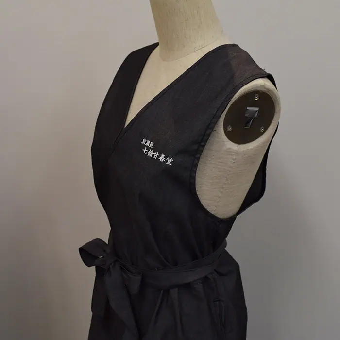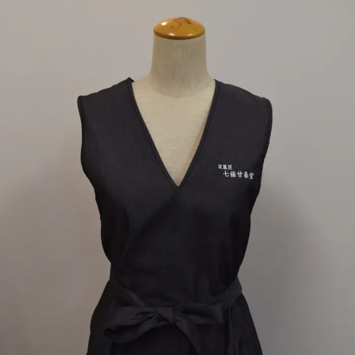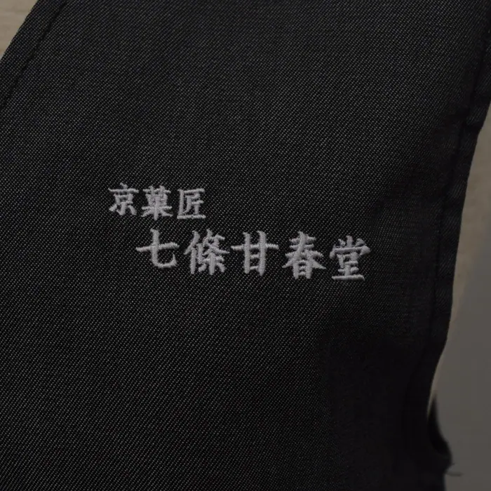 オリジナル制服製作実績 ネームゴ刺繍 /七條甘春堂様/飲食店サービス制服ユニフォームナイスユニ