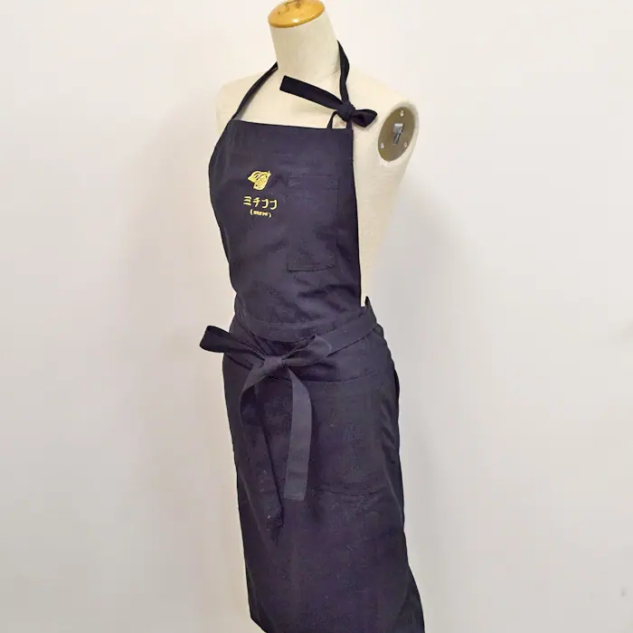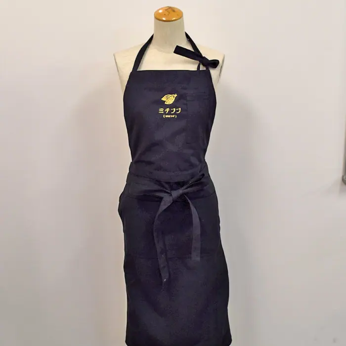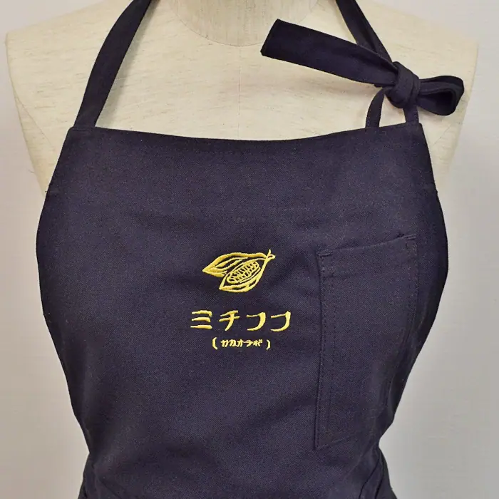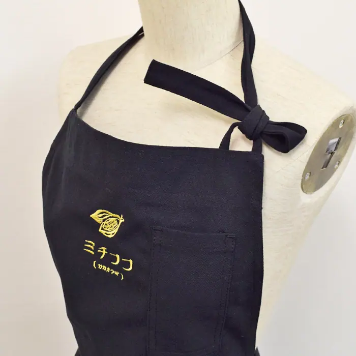 オシャレカフェ ミチココ様より、ロゴ刺繍入りスタッフエプロンの製作をさせていただきました。