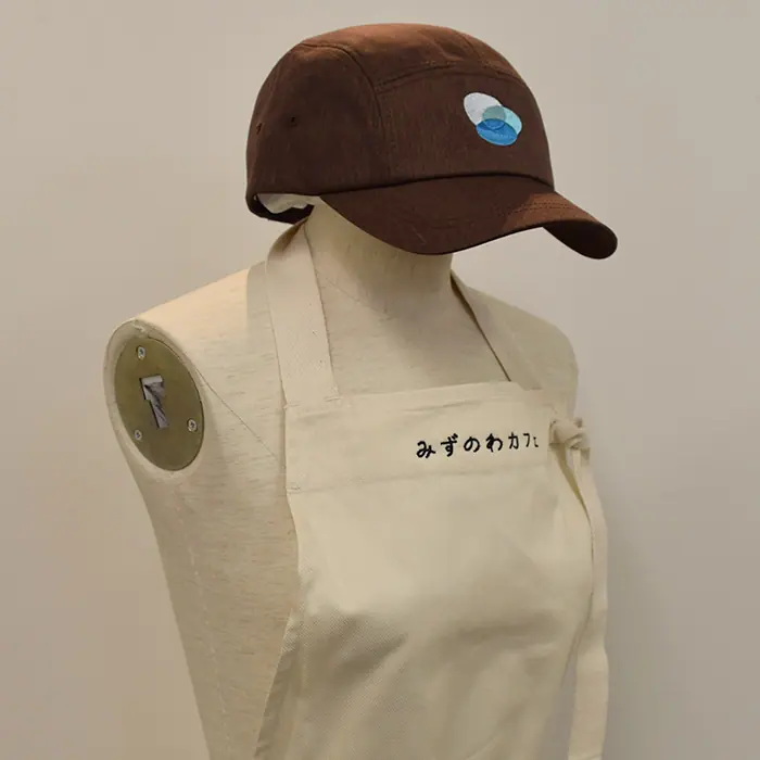 オリジナル制服製作実績 ロゴ刺繍 /20220401_みずのわカフェ様/飲食店サービス制服ユニフォームナイスユニ
