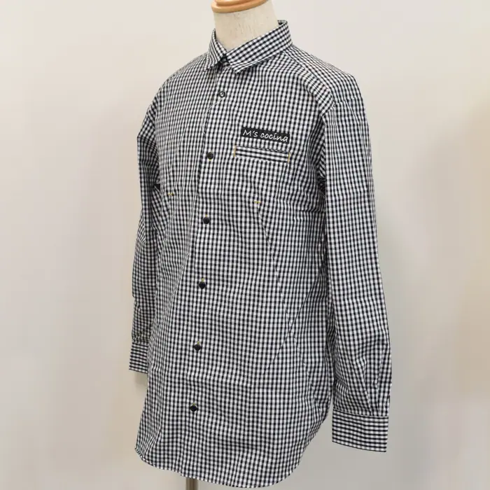 形状安定加工のシワになりにくいカジュアルなチェックシャツにロゴ刺繍をご依頼いただきました。