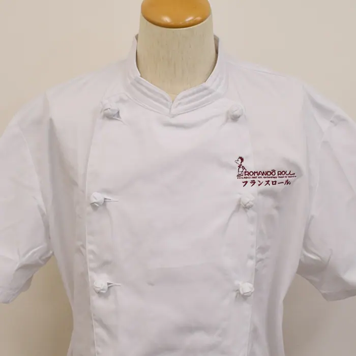 " /> オリジナル制服製作実績 ロゴ刺繍 /株式会社ROMANDOROLLJAPAN様/飲食店サービス制服ユニフォームナイスユニ