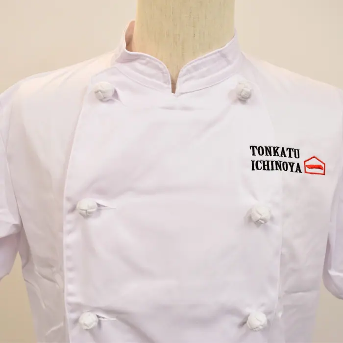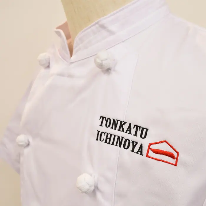 とんかつ専門店 一の家様のコックコート新調で、刺繍入りユニフォーム作成のお手伝いをさせていただきました。