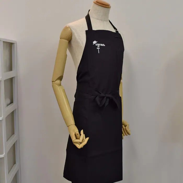 いつもユニフォームをご注文いただいております、シャツや白衣で使用のロゴを少しアレンジして、黒のエプロンにシンプルにロゴを作って刺繍しています。