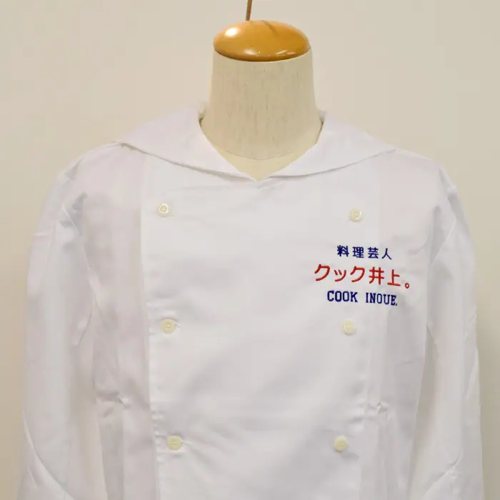 あの、料理芸人 クック井上。様より、オリジナルネーム刺繍入りコックコートのご注文をいただきました。