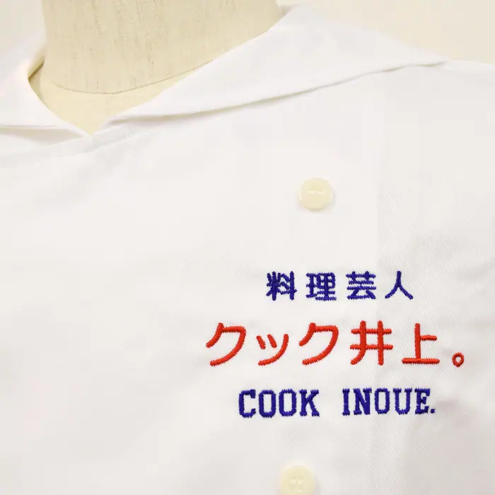 • オリジナル制服製作実績 ネームゴ刺繍 /料理芸人クック井上。様/飲食店サービス制服ユニフォームナイスユニ