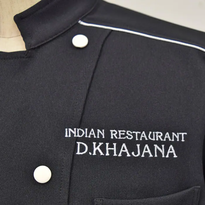 福岡で有名なインド料理店D.KHAJANA様がナイスユニにご来店いただき、ネーム刺繍入りコックコートをご注文していただきました。