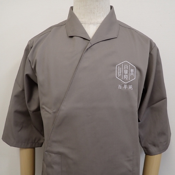 上質な和の上着に焼肉店舗のロゴをシンプルにロゴ刺繍のご依頼い頂きました。