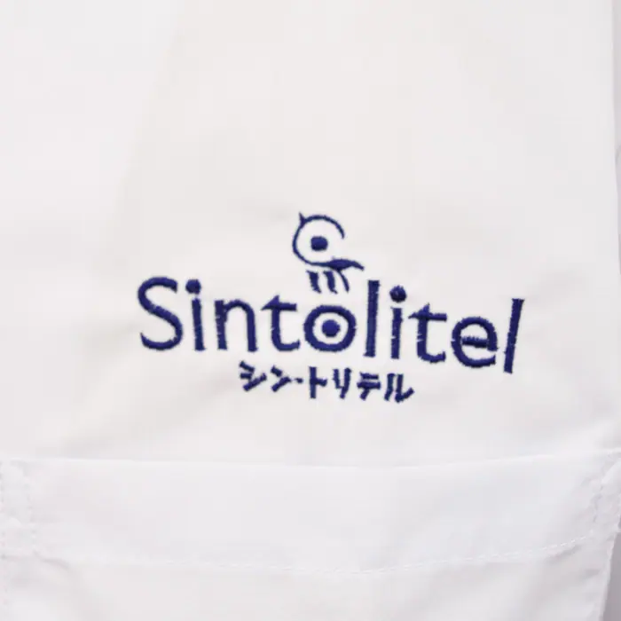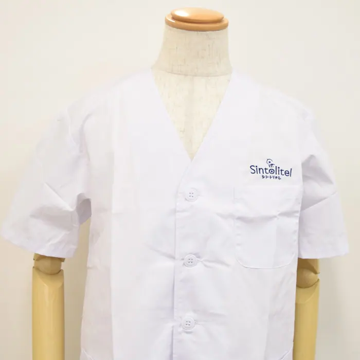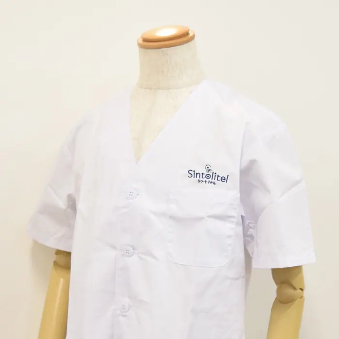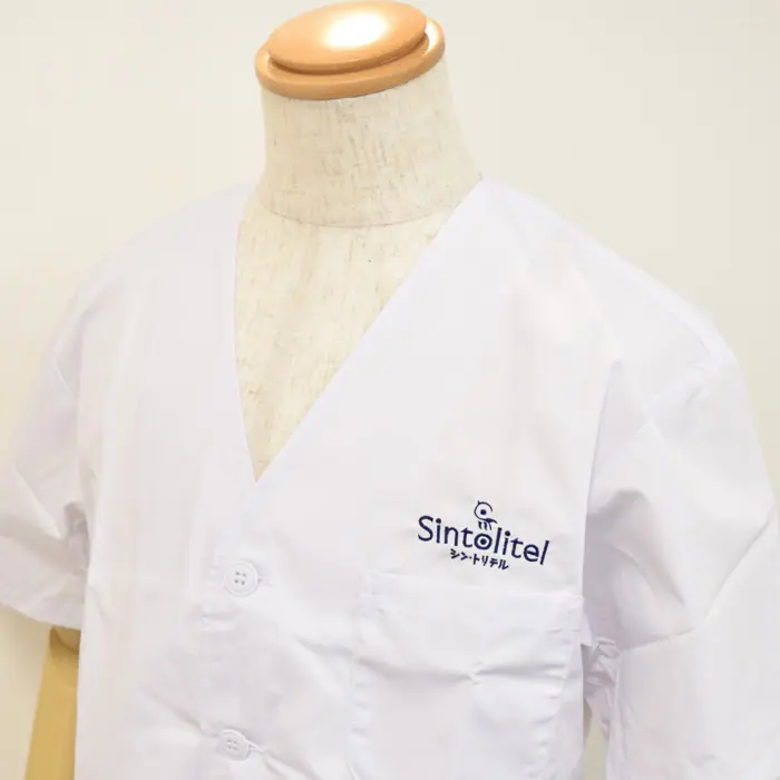 リーズナブルな調理白衣も、このようにかわいいロゴ刺繍をいれることで、オシャレで働くスタッフもテンションの上がるオリジナル制服が作れます。