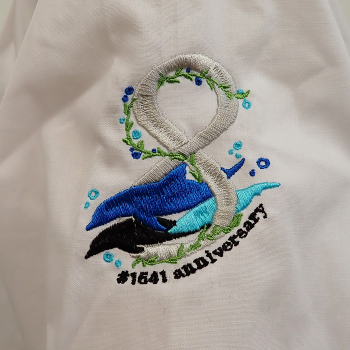 記念すべき8周年のオリジナルロゴを右袖へ刺繍加工させていただきました。