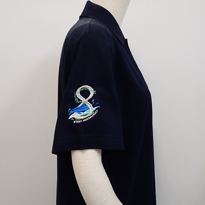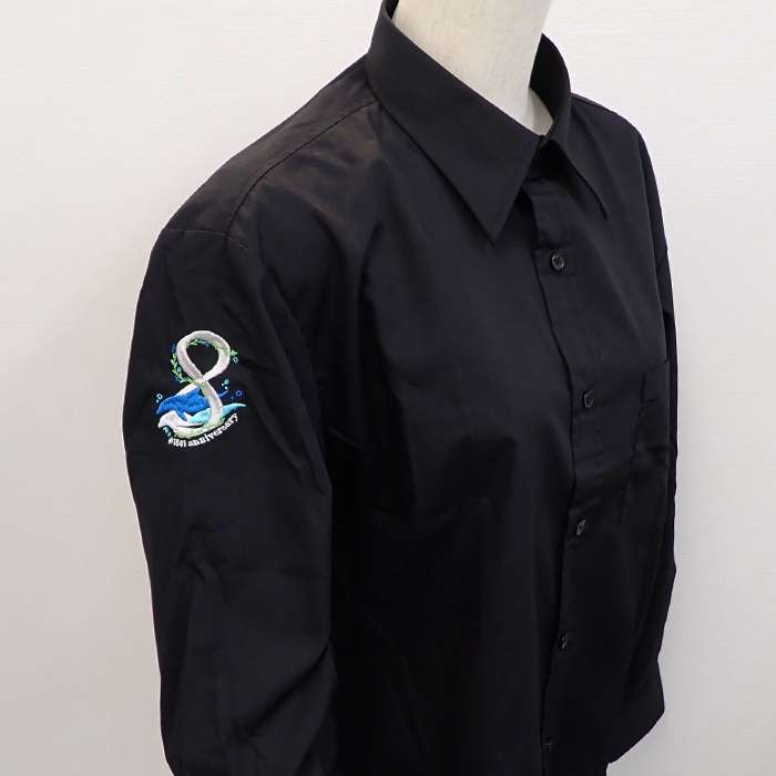 黒の長袖シャツと黒のポロシャツの2アイテムに同じロゴを刺繍しました。どちらも可愛い仕上がりです。さらに10周年と皆様に愛されるお店になることを祈念しております。また次回の新しいデザインも楽しみにしております。ありがとうございました。