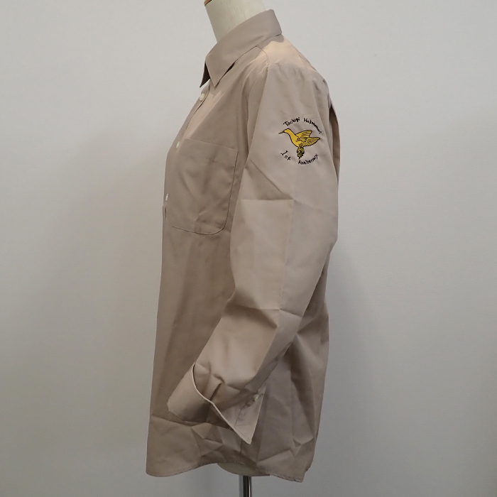 黄色の鳥のシャープなデザインがとても映えます。そして、右衿にコーヒーの木と実のロゴもいれるというこだわり。素敵です。
