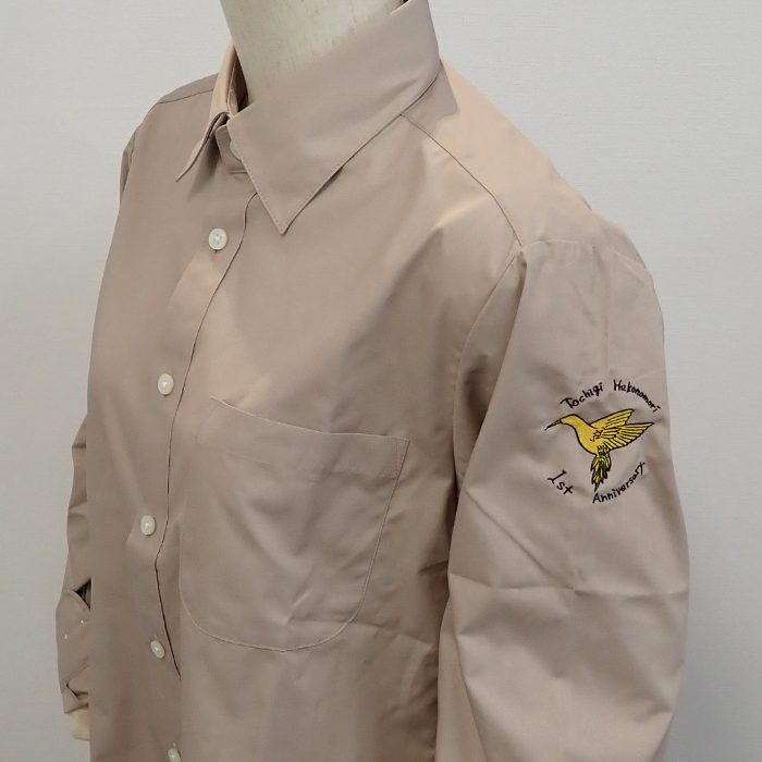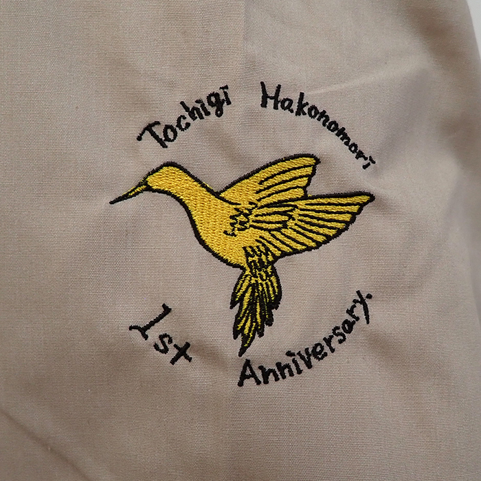 記念すべき1周年のオリジナルロゴを左袖と、店番ロゴを襟の右側に刺繍加工させていただきました。