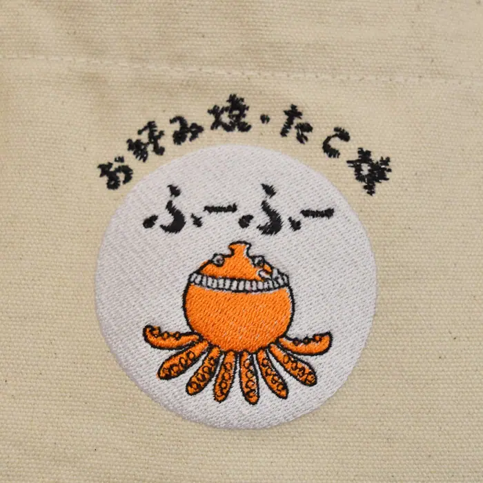 いただいたロゴがもう、かわいすぎて萌えました^^。このロゴの細かい蛸の吸盤の線まで、刺繍で綺麗にかわいくしあげることができました。