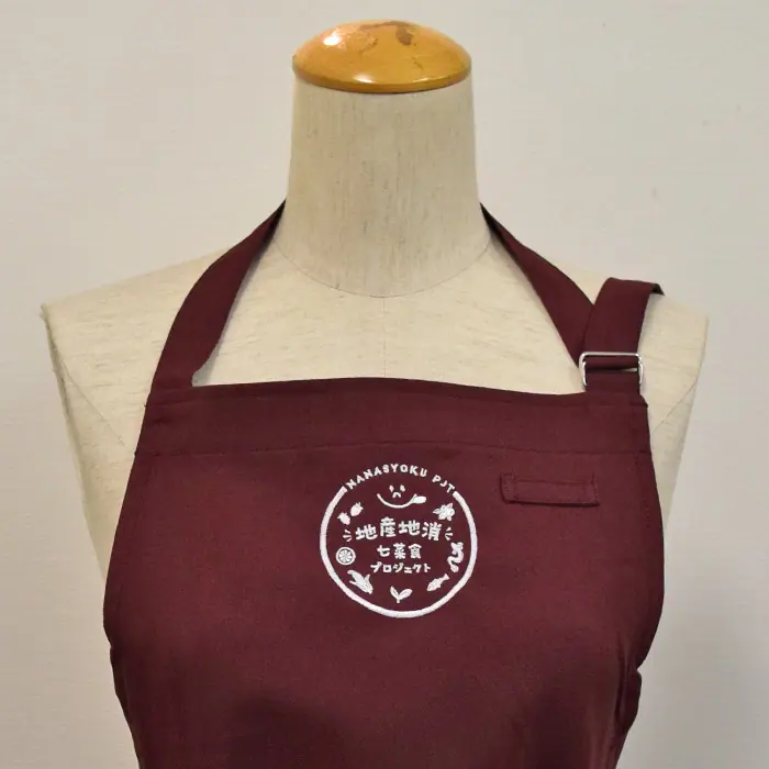 地産地消のお野菜、おさかな販売、地産地消の食をご提案されるYuisupport様より、ロゴ刺繍入り販売店エプロンの制作をご依頼いただきました。