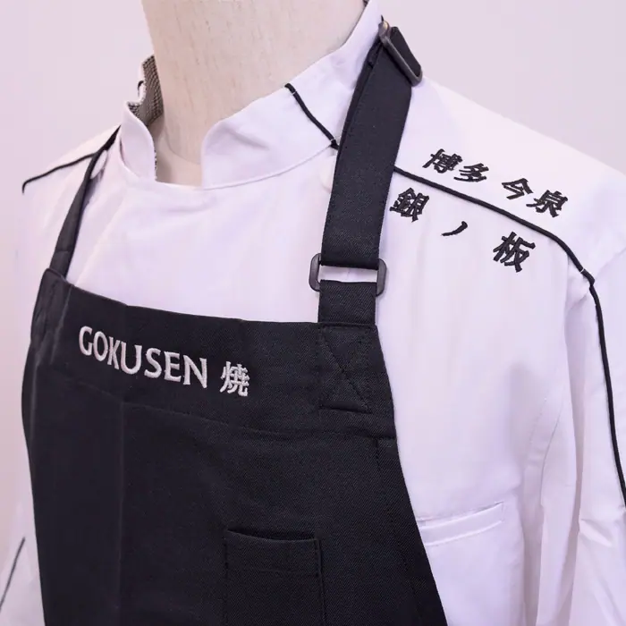 エプロンの店名の刺繍とバランスよく仕上がっていると思います。お客様にもご満足いただけて我々も嬉しかったです。