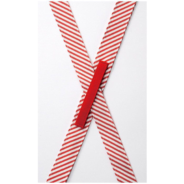 無地のエプロンにアクセントとしてエプロンヒモがストライプ柄で可愛い胸当てエプロン。左右ポケット付き。可愛いエプロンなのに防脱色加工で塩素系漂白剤に強く、変色しにくくなっていますので長くきれいを保てます。静電加工(ネイビー除く)付きで食品を扱う場としてほこり対策もバッチリ!色はレッド、ブラック、ネイビー、サイズはMとLの2サイズです。ベージュは2026年度カタログをもって廃盤となりました。