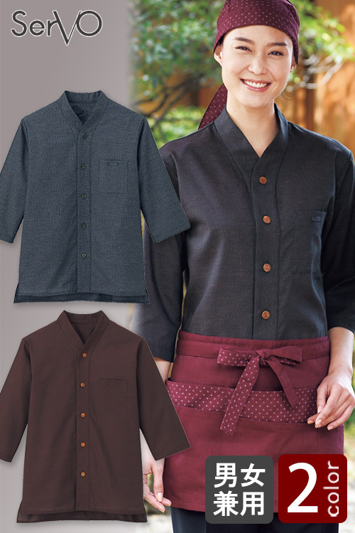シワありのナチュラルな風合いが和カフェなど和風飲食店や旅館などにオススメのユニフォームです。