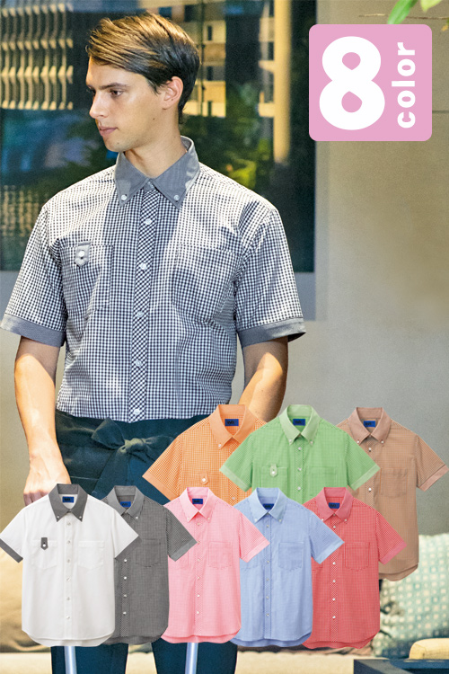 カフェなどの飲食店に超お勧めの小柄ギンガムチェックシャツ。形状安定で毎日キレイ!ジャストフィットな作りが嬉しいクリーンな男女兼用五分袖シャツ。色も豊富なのが嬉しい。小柄ギンガムチェック×形状安定で毎日キレイ!ジャストフィットな着心地を目指したサイズ感。清潔&クリーンな消臭機能を付いた男女兼用五分袖シャツ。どんなボトムスト合わせても、スッキリと垢抜けた印象に。