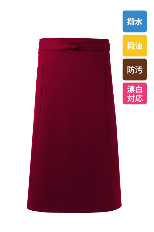 撥水撥油・防汚・退色防止加工と至れり尽くせりのショートソムリエエプロン!ひもがズレないよう内側にループがあり、キレイに着れます。着け心地も抜群!もちろんイージーケア!両脇ポケット以外に小物用のポケットもありますよ。国産生地、国内縫製で安心の品質。