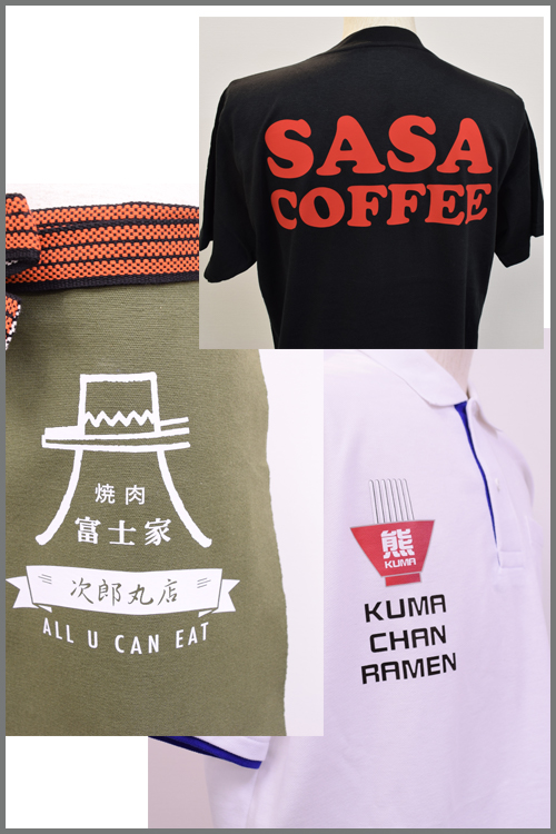 オリジナルユニフォーム、飲食店制服・ユニフォームを転写プリントで製作。