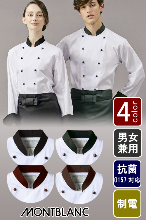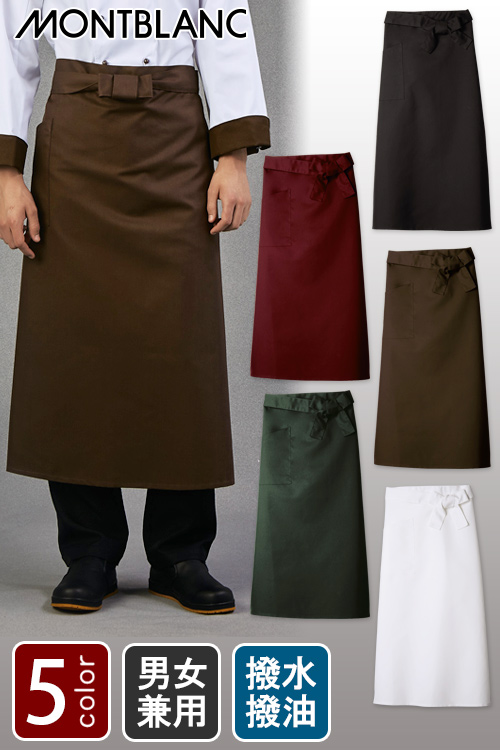 スマートで存在感のあるロングエプロン。水・油に強い防汚加工でキレイをキープします。