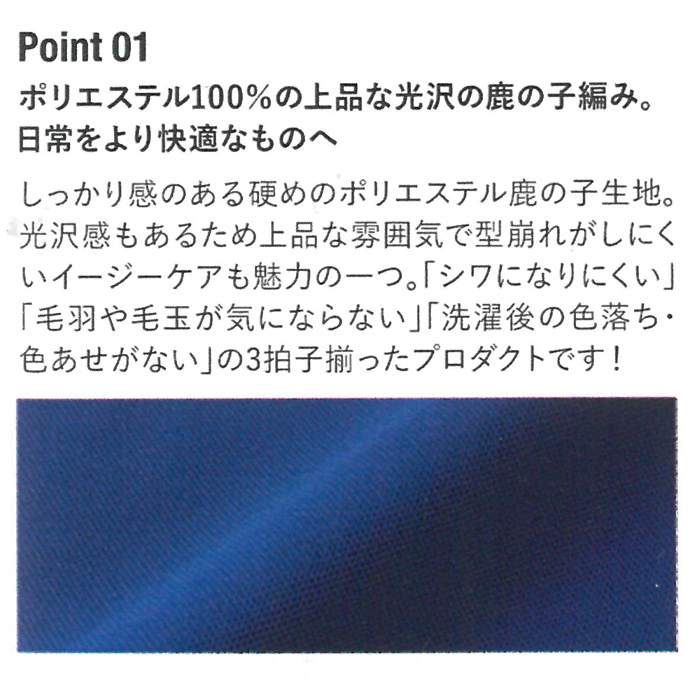 ドライカノコでポリながらさらっとした肌触りです。スポーツ、普段着にもオススメです。