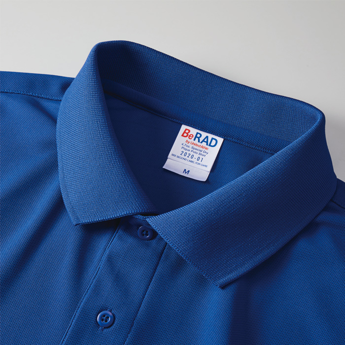 飲食店販売店制服ユニフォーム用ポロシャツ。ポリ100%でシワになりにくく、乾きやすい、濃い色も色落ちがないです。ドライカノコでポリながらさらっとした肌触りです。