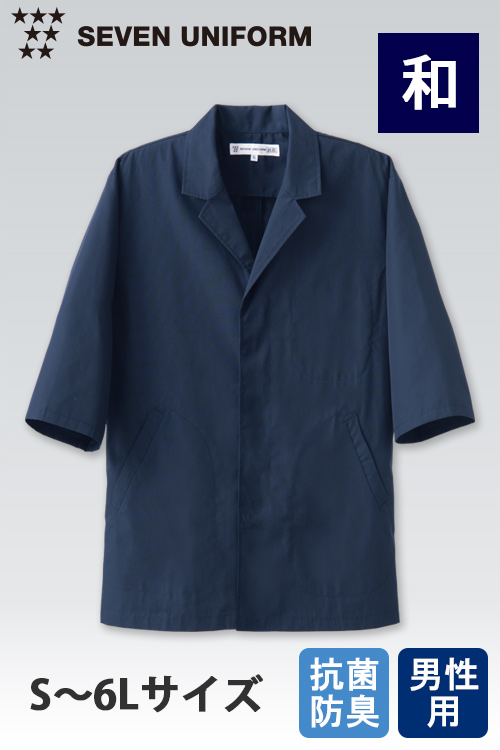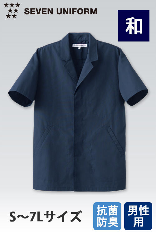 和装ユニフォームで人気の色・ネイビー抗菌防臭白衣コート5分袖【男性用】