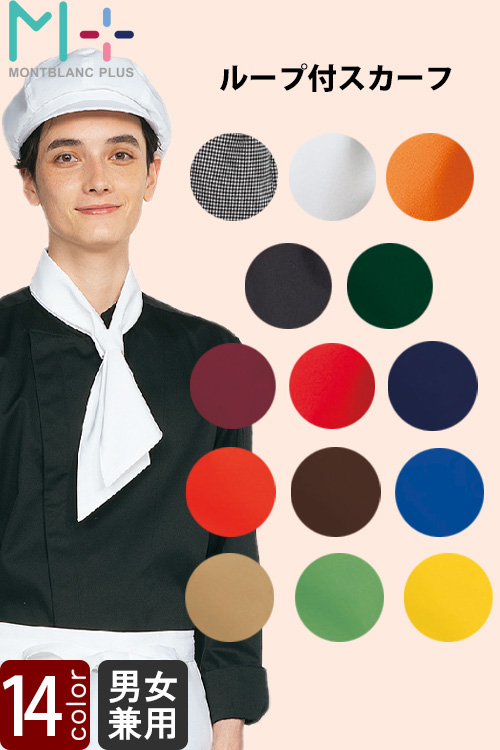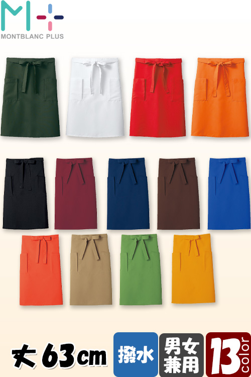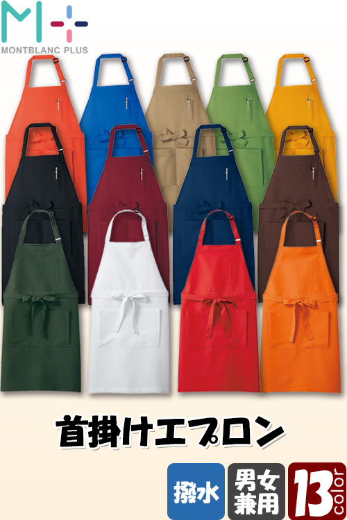 ビビット&シックを揃えた多彩な13色カラーバリエーション。大きめポケットが便利な首掛けカラーエプロン。同色の帽子やスカーフタイとのコーディネートも可能です。