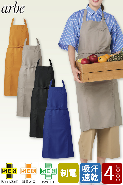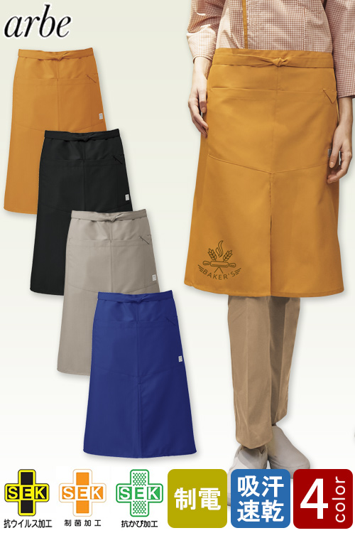 食の安全を守る制菌+抗ウイルス&抗カビ加工腰下エプロン【4色】