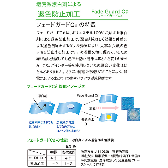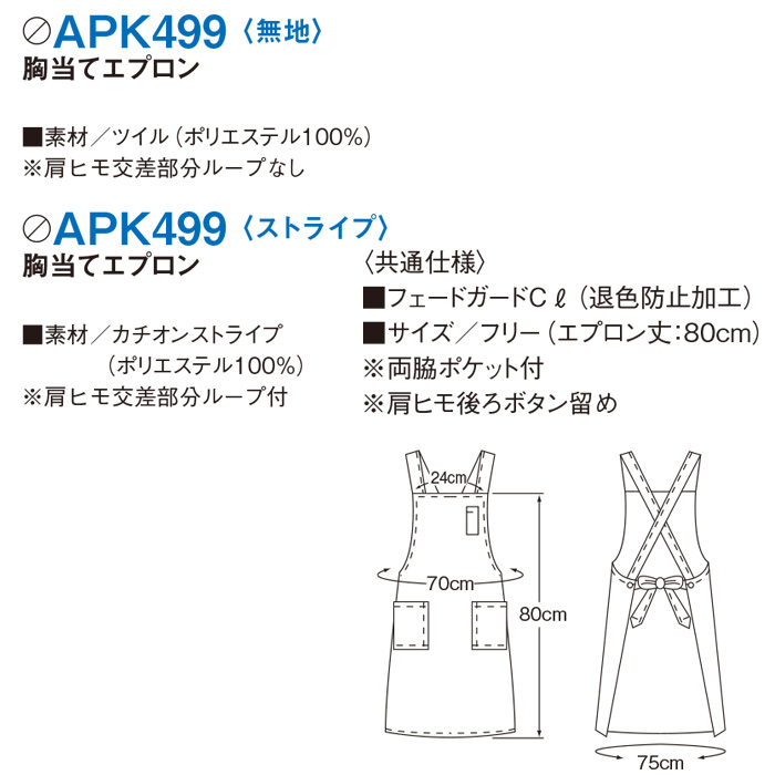塩素漂白剤による退色防止加工の色が選べるエプロン。