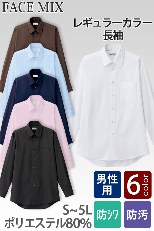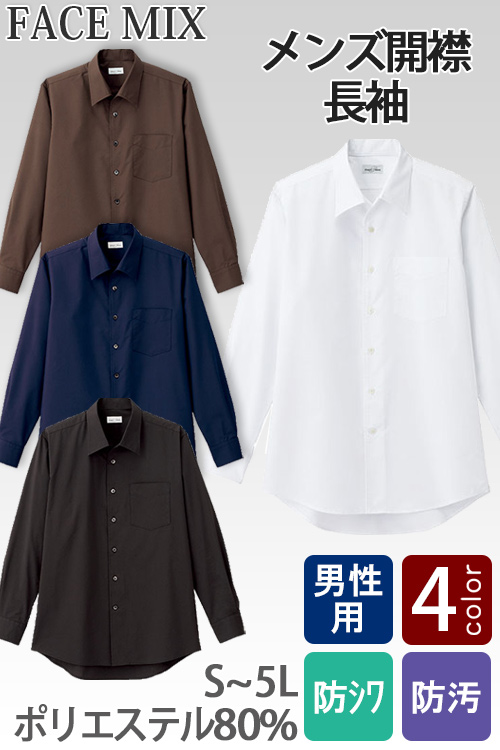 飲食店・サービスユニフォームで使いやすい定番の男性用長袖シャツ。お買得価格で生地にこだわったこだわりのシャツです。シワになりにくい形態安定素材と、汚れが付きにくい防汚加工を施しているので、お手入れ楽々。