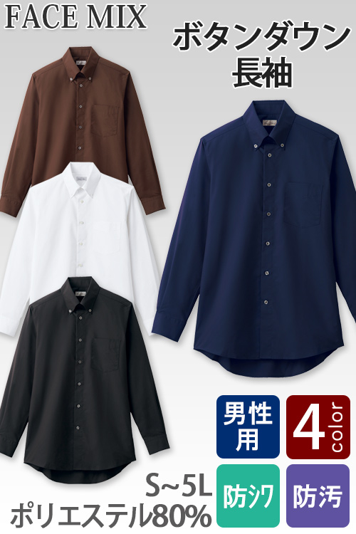 飲食店・サービスユニフォーム 値段が安くて大量に買いやすいメンズボタンダウン長袖シャツ。形状安定でシワになりにくく洗濯が楽です。防汚れ加工でいつも清潔にお仕事できます。肌触りがいいブロード生地でサイズはS~5Lまで。