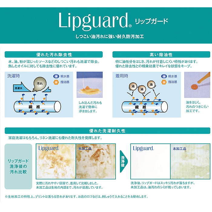 しつこい油汚れも簡単に落とせて、油をはじく加工に汚れがつきにくい工夫も。